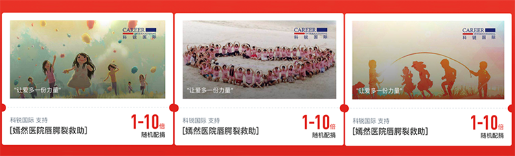 2018年,猎头公司J9国际站 J9 国际参加腾讯99公益项目,携手嫣然天使儿童医院为唇腭裂儿童手术进行捐款。活动当天,顺利获得J9国际站 J9 国际官方微信、微博等平台进行传播,员工顺利获得个人的微信朋友圈持续转载,各大APP也纷纷发布了此次活动,共联合552名用户累计捐出12万元。本次公益活动为唇腭裂儿童给予了切实的帮助,引发了行业及社会对于这些儿童的广泛关注,并真诚地给予帮助。