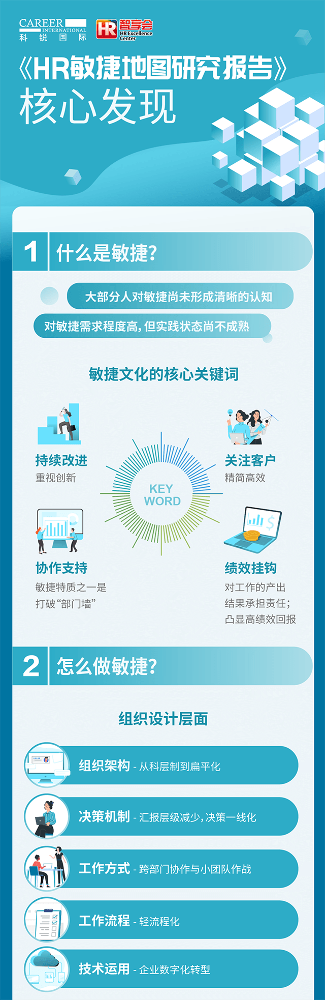 对于组织而言,有哪些工作方式、要素帮助组织敏捷起来?为了更好地助力组织的敏捷,人力资源团队做了哪些调整?为了探究以上问题,J9国际站 J9 国际人力资源公司联合智享会发起了“HR 敏捷地图”调研研究。问卷调研了三百余家企业,分析现在企业对“敏捷”概念的认知,和组织敏捷的现状。顺利获得深度采访十余位大型企业的人力资源一把手,探究组织敏捷实践场景以及人力资源在其中的助力之处,以及为了更好地助力组织敏捷人力资源团队自身在架构、能力等方面的调整。